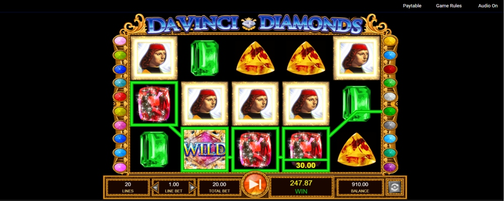In Da Vinci Diamonds, landing the bonus symbol on the first, second, and third reels triggers six free spins, which can extend into bigger wins. Additionally, three scatter symbols increase payouts compared to standard combinations, offering more chances to win.